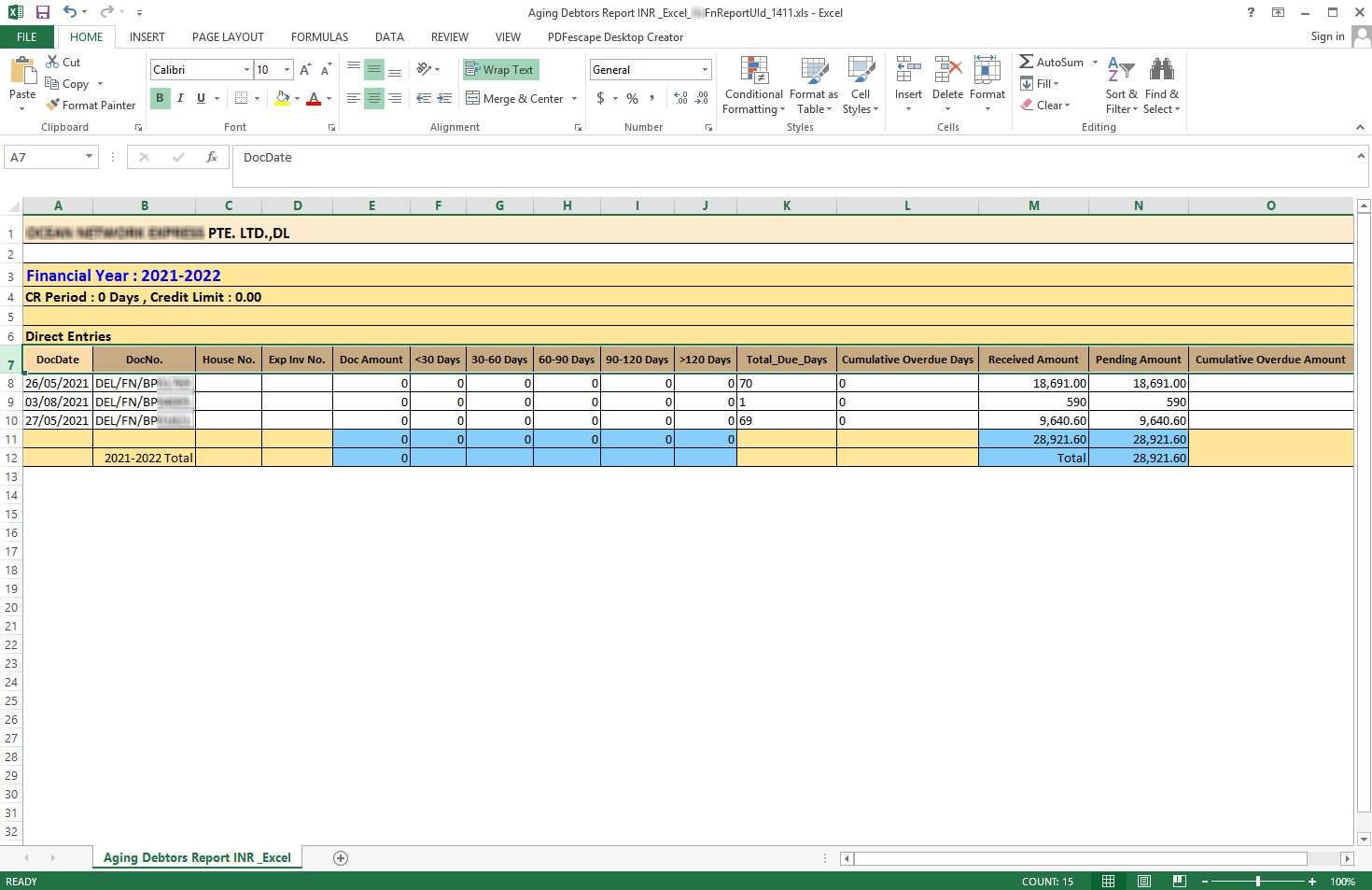 Aging Debtors Report (INR) Excel - 1411