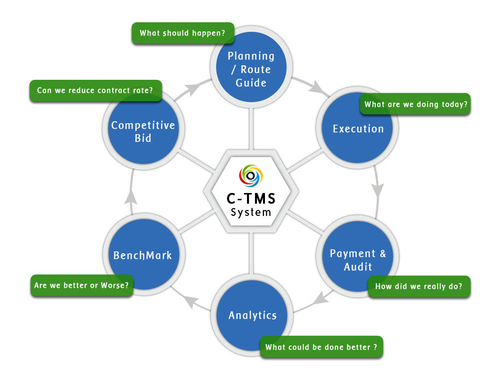 One of the most Challenging segments of freight movement domestically continues to be over-the-road trucking, which accounts for 80% of freight transportation modes. C-TMS that could open a window of business visibility and control Truck Transportation would put unprecedented cost and servicemanagement tools in the hands of shippers and 3PLs