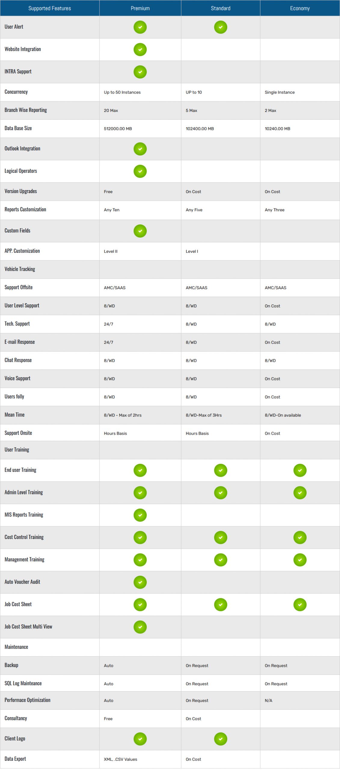 The following Table shows a comprehensive evaluation of the different editions of CargoNet. CargoNet is a completely integrated software package developed exclusively for the Supply Chain segment. The Complete Integration makes all modules of Supply Chain are effectively and efficiently integrated.