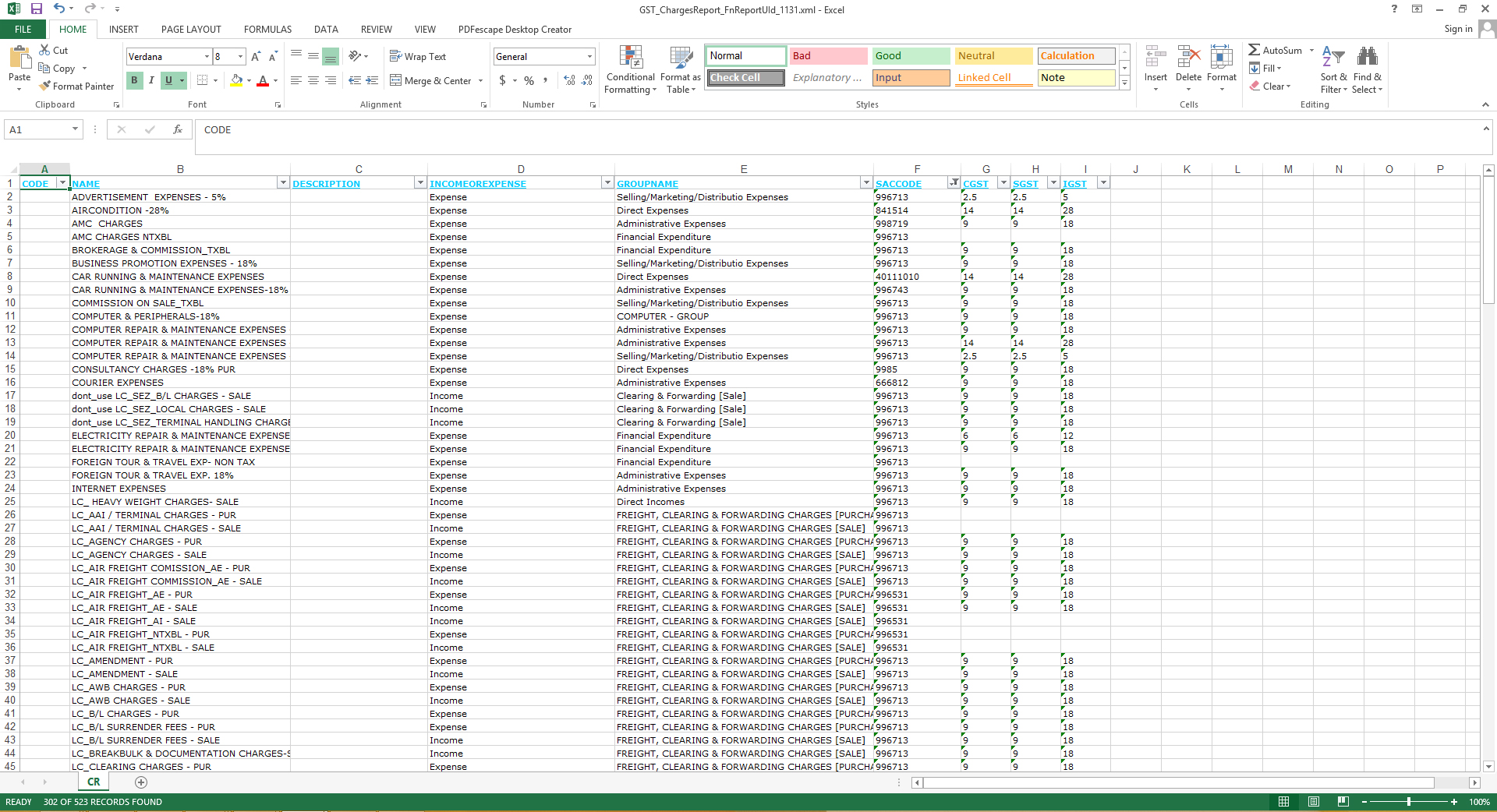 GST Charges Report Excel – 1131